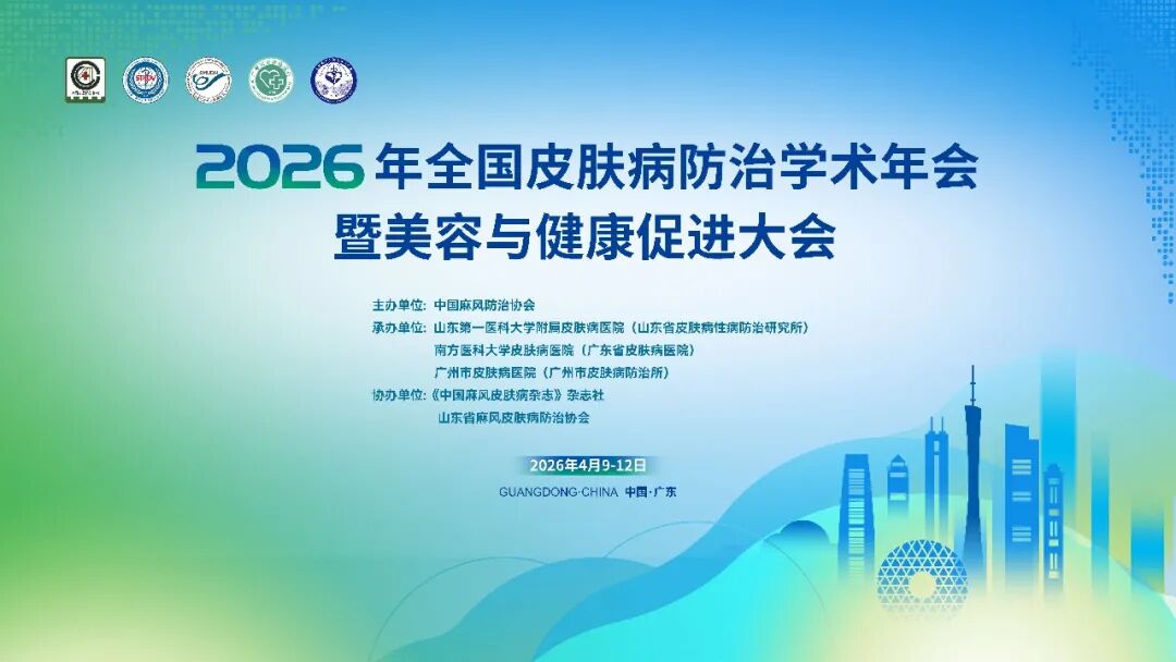 由中国麻风防治协会主办“2026年全国皮肤病防治学术年会暨美容与健康促进大会”即将于2026年4月9日至12日在广东省广州市举办,本次会议是我国麻风皮肤病防治和健康促进领域的一次盛会。热烈欢迎来自全国医疗机构、疾控机构、科研院所和医药企业等相关专家及同道莅临大会。